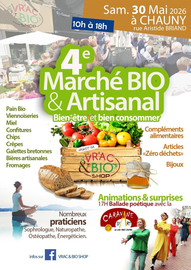 Marché Bio & Artisanal le 30 mai 2026 à Chauny : j’y serai présente avec d’autres thérapeutes! Promotions et cartes cadeaux (anniversaires, mariage…) avril 12, 2026 par Sophie_W Partager : Partager sur X(ouvre dans une nouvelle fenêtre) X Partager sur Facebook(ouvre dans une nouvelle fenêtre) Facebook J’aime chargement… Similaire