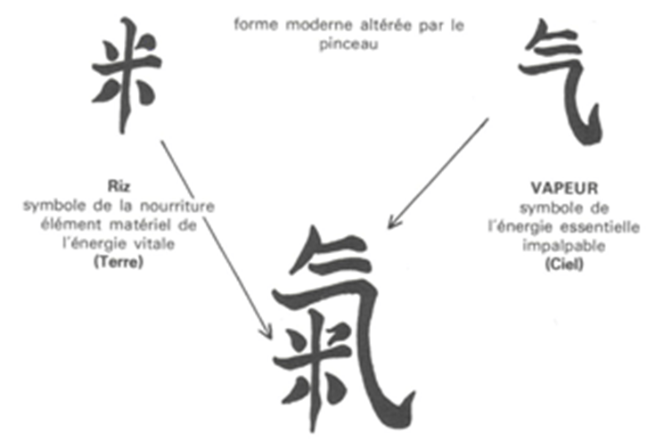 On peut parfois parler d’excès et de déficience du Yin, du Yang. Qu’est-ce qui suscite ces excès ou déficiences ? C’est le mouvement dynamique du Qi (prononcez ‘tchi’ ). C’est la force motrice et créatrice qui imprègne toute chose, c’est l’énergie qui crée la vie, la force vitale de tout être vivant.